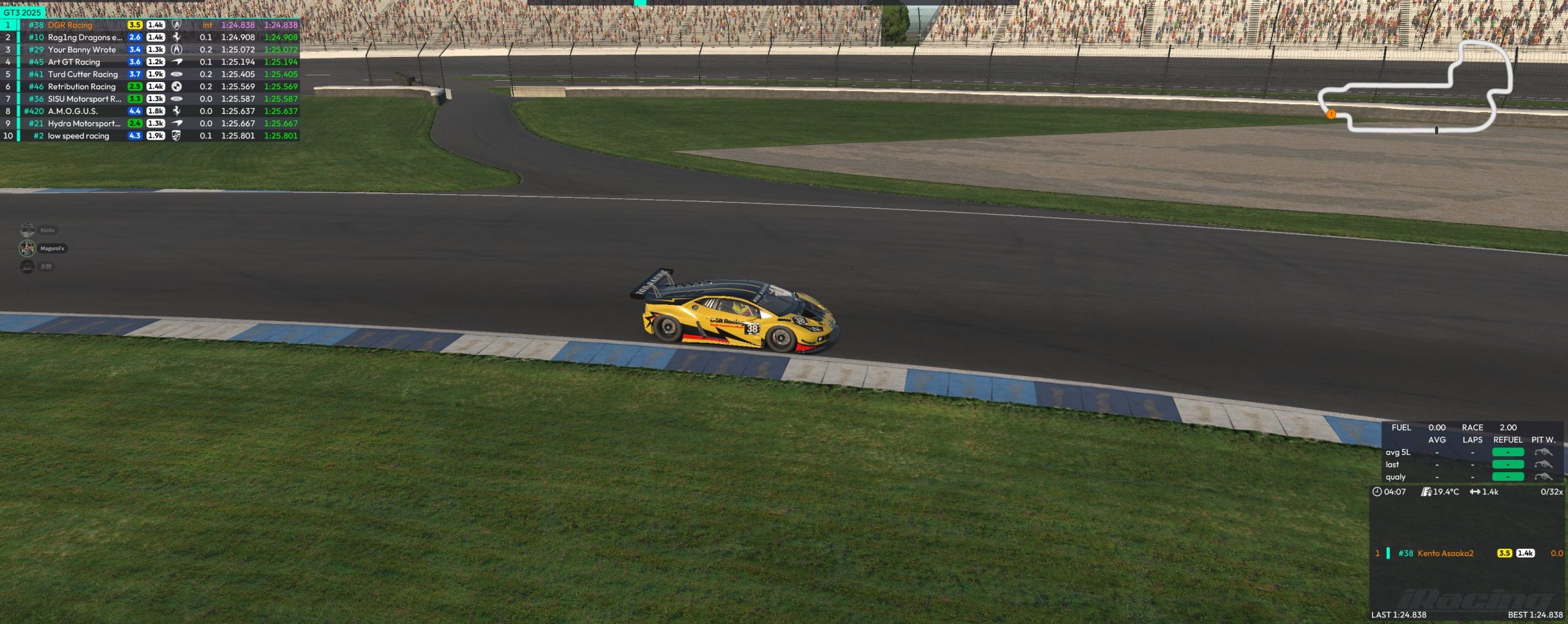 結果100FPS出てたので快調にレースに溶け込んでいきます 数周走った時点でタイヤが温まってきて26秒が出ましていよいよ25秒台で周回だってタイミングで目がチラつきます